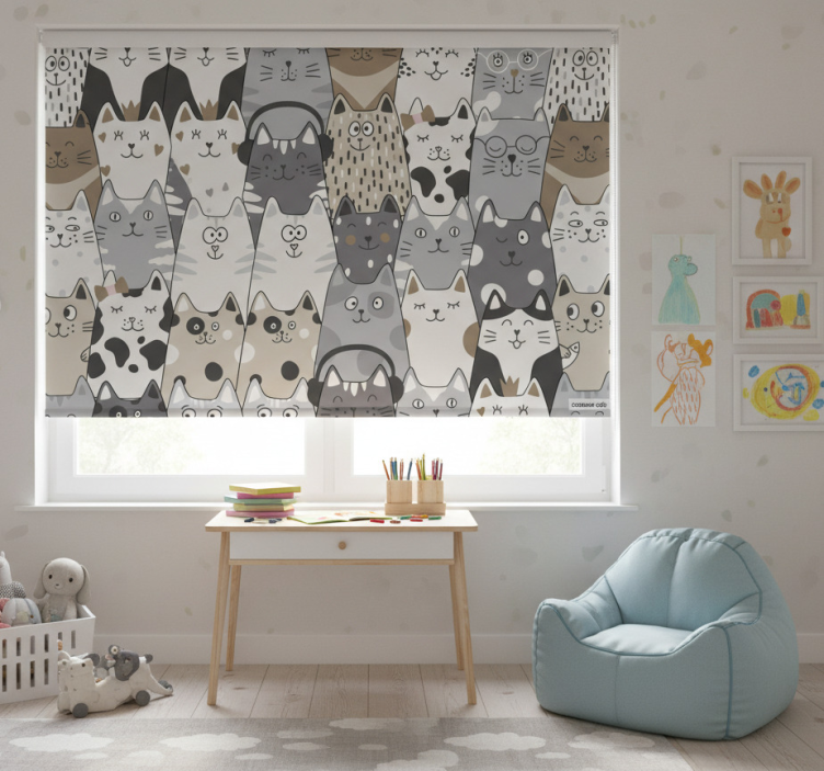 Reference: E7223Transform your space with our delightful Blind children cartoon cats design! This charming roller blind features vibrant illustrations of playful cartoon cats, designed to bring joy and a sense of wonder to any room. With its ability to protect from direct sunlight while enhancing the decor, this product is perfect for creating a warm and inviting atmosphere that both children and adults will love.