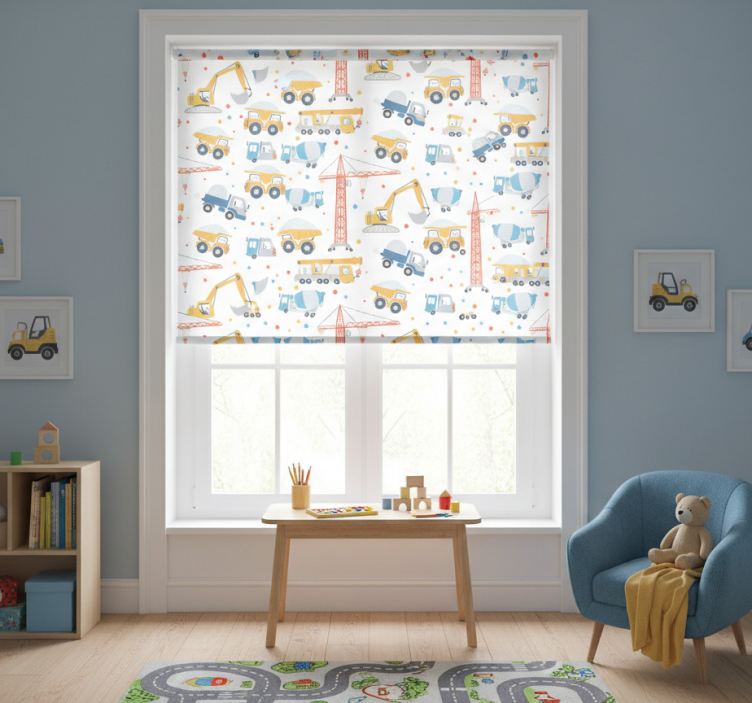Reference: E6812Introducing our stunning Blind children construction themes roller blind, designed with vibrant graphics that captivate the imagination! This delightful product features easy assembly in just 2 clicks, effortless cleaning, and quick disassembly, ensuring that your window and its surroundings remain spotless. Not only does it protect your space from direct sunlight, but it also provides privacy when lowered, allowing you to enjoy your activities without interruptions. Experience enhanced room temperature regulation and added security, as it allows you to see outside without being seen. Plus, it elevates the overall decoration of your room with its customizable options!