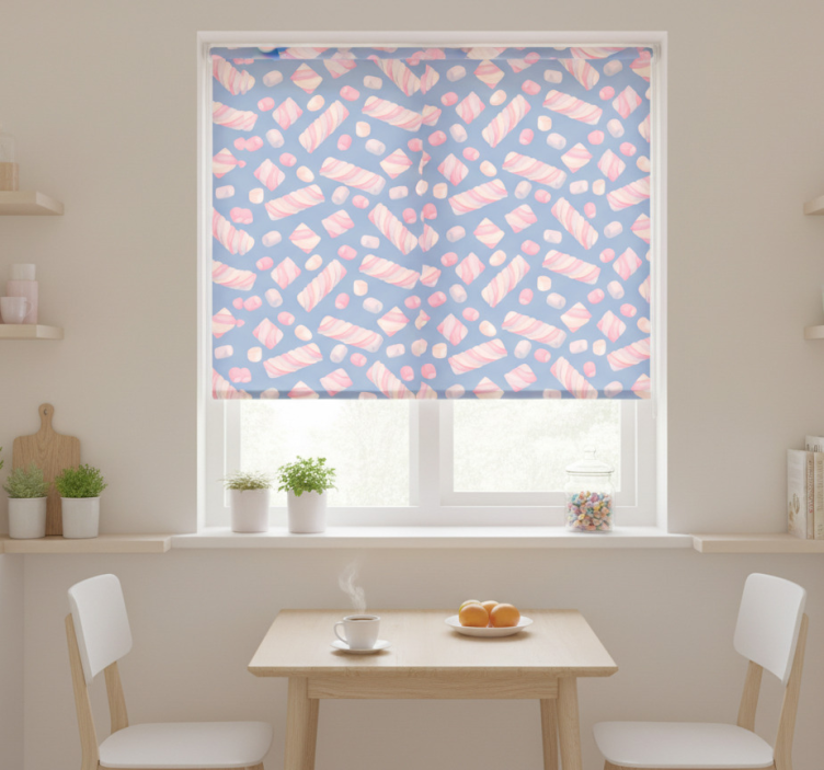 Reference: E6438The Blind kitchen marshmallow boasts a modern and stylish design that seamlessly blends functionality with aesthetic appeal. This roller blind features a unique texture that enhances the visual charm of your kitchen space while providing essential benefits such as easy assembly in just two clicks, easy cleaning, and the ability to regulate room temperature. Not only does it protect your room from direct sunlight, but it also offers privacy when lowered, ensuring you can enjoy your space without compromise!