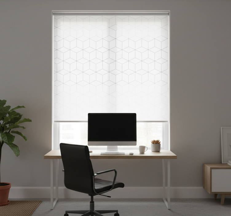 The Blind office geometric cubes design blind office is an exceptional choice for enhancing your workspace decor. Its captivating geometric pattern brings a contemporary flair that inspires creativity and productivity. This stylish blind not only elevates the aesthetic appeal of your office but also serves practical purposes, such as controlling light and maintaining privacy. Transform your work environment into a vibrant hub of innovation with this eye-catching design!