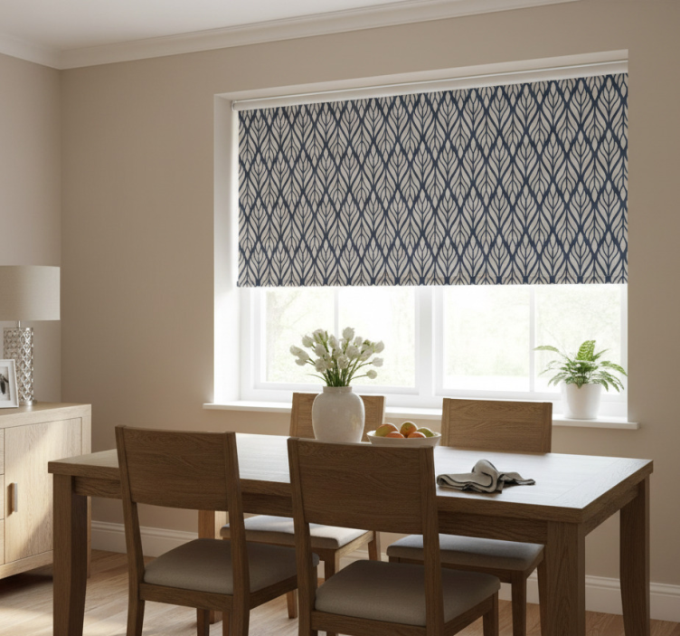Enhance your living space with the Dining room blind in glamour grey blue pattern dining room blind. This stunning design serves more than just a practical purpose; it embodies sophistication and style. Imagine hosting dinner parties where your guests are enveloped in a warm, inviting atmosphere, all thanks to this beautiful roller blind! It seamlessly integrates into your decor, making any dining room feel more refined and inviting.