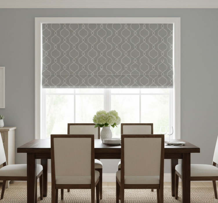 Reference: E6592Introducing Our Dining Room Blind in Gray Geometric Hamptons Pattern