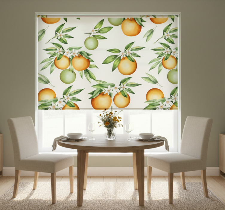 Dining room blind with citrus fruit design
