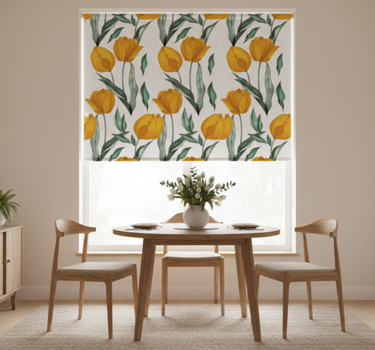 Enhance your décor with the Dining room blind with yellow tulip oil painting dining room blind. This beautiful piece not only serves as a practical window covering but also acts as a statement piece that inspires conversation and admiration. Imagine inviting friends and family to gather around a table adorned with this stunning blind, where the vibrant colors and artistic flair elevate the entire dining experience. It seamlessly blends functionality with aesthetics, ensuring that your dining room is both cozy and chic!