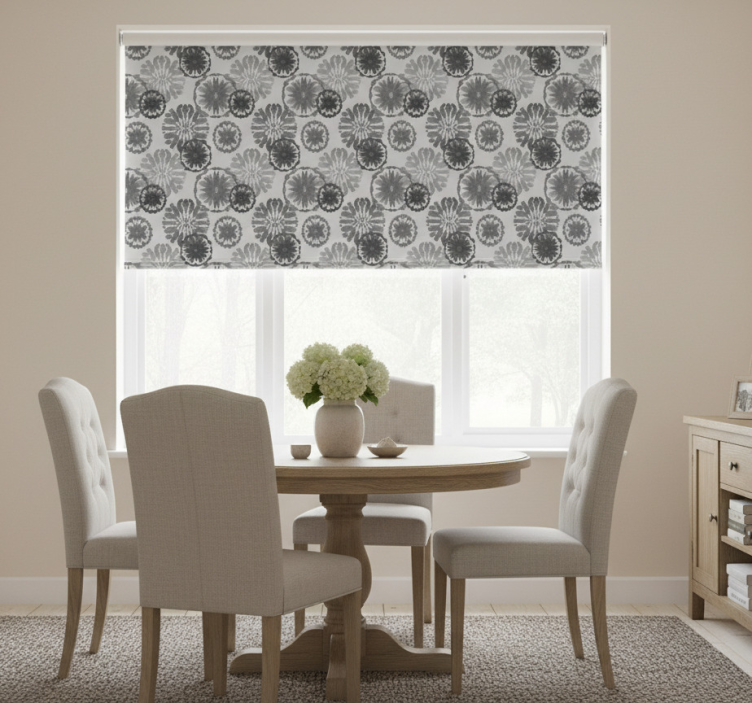 Reference: E6733Introducing our Grey painted illusion dining room blind, a stunning addition to any modern home! This roller blind showcases an elegant grey painted design that creates an illusion of depth and texture, seamlessly blending with your dining room's decor. Enjoy the easy assembly that requires just 2 clicks, and appreciate how effortlessly it protects your space from direct sunlight while providing enhanced privacy. With the ability to regulate room temperature, it not only beautifies your interiors but also adds a layer of security, allowing you to observe the outside world without being seen.