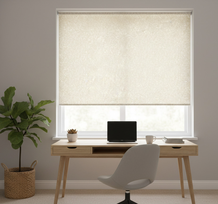Home office blind in soft beige and white