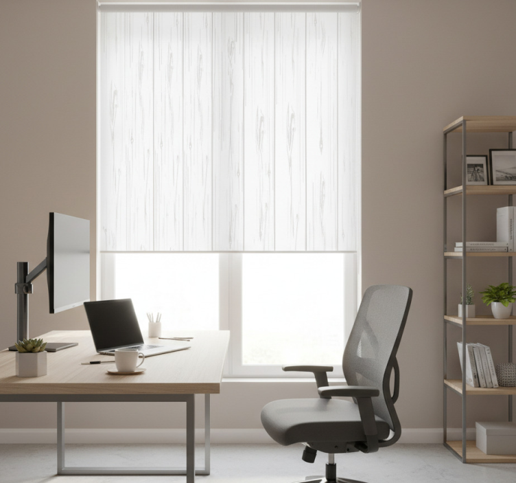 Reference: E6199Introducing our stunning Home office blind in white wood modern rustic, a perfect blend of charm and elegance! This roller blind features an exquisite design that enhances any space, with easy assembly in just 2 clicks, effortless cleaning, and a convenient disassembly process that allows for quick maintenance. Enjoy the benefits of protecting your room from direct sunlight while providing privacy when lowered, all while maintaining a cozy atmosphere. The design ensures you can regulate room temperature and enhances security, allowing you to see without being seen. Plus, it’s 100% customisable in measurements and textures, tailored to your specific needs!