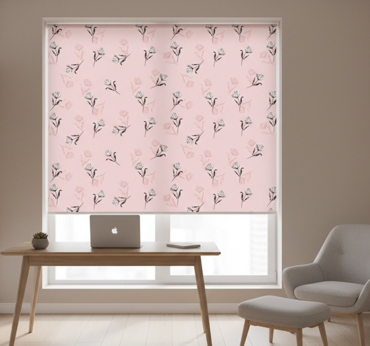 Reference: E6197Transform your workspace with our stunning Home office blind white lilies on pink background. This beautifully designed roller blind features delicate white lilies gracefully set against a soft pink backdrop, creating a serene and inspiring atmosphere for your home office. The design not only brings elegance but also enhances the overall decor with its charming floral pattern, making it the perfect addition to any interior.