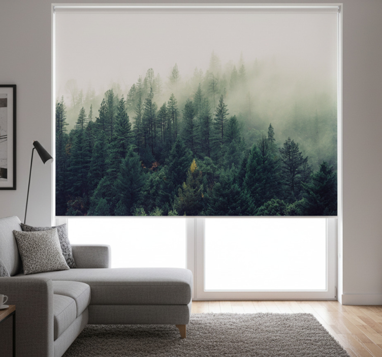 The Living room blind foggy forest design living room blind is the ideal choice for anyone looking to elevate their interior decor. It serves as a stunning focal point, bringing the beauty of nature indoors while providing functionality. This unique roller blind allows you to enjoy privacy and regulate room temperature, all while creating a cozy atmosphere that invites relaxation and inspiration!