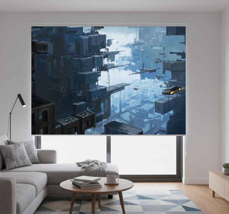 The Living room blind in a futuristic city with spaceships living room blind serves as a remarkable centerpiece that elevates your interior decor. Its unique design sparks conversation and inspires creativity, allowing you to transform your living room into a realm of imagination and style. Let the vibrant imagery transport you to another world, creating an inviting and inspirational space for family and friends!