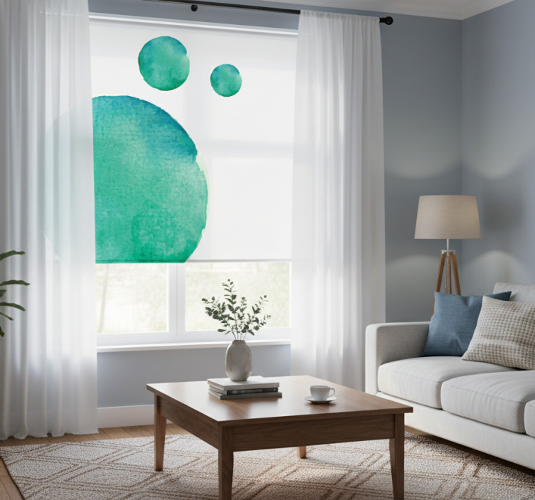 Living room blind in abstract watercolor aquamarine