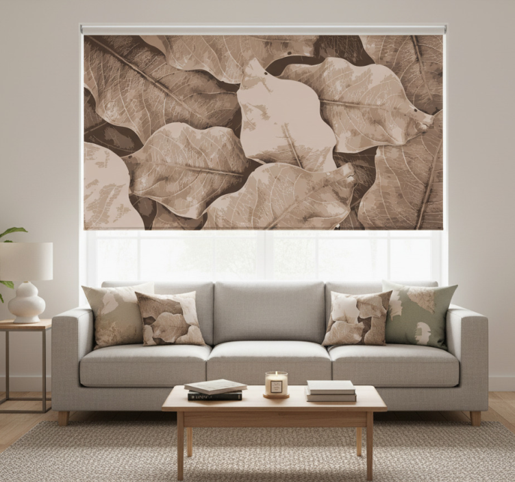 Reference: E8611Introducing our stunning living room blind in beige dried leaves design, a perfect blend of elegance and nature! This unique design features beautifully crafted dried leaves in soft beige tones that effortlessly enhance any living space. The intricate patterns create a soothing atmosphere, making it an ideal choice for those who appreciate the beauty of the outdoors while enjoying the comfort of home. With easy cleaning, quick assembly, and disassembly in just 2 clicks, this roller blind offers convenience along with style. Not only does it protect the room from direct sunlight, but it also provides privacy when lowered, allowing you to enjoy your space without interruption!