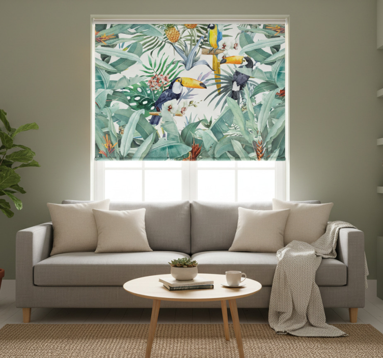 The Living room blind painted jungle living room blind is the epitome of style and functionality! It serves as a stunning focal point in your decor, transforming your living area into a serene oasis. Imagine relaxing in a room adorned with lush, vibrant patterns that evoke tranquility and creativity. This roller blind not only enhances the aesthetic appeal but also creates a cozy atmosphere, making it the perfect choice for anyone looking to uplift their interior design. It's time to let your walls tell a story and embrace the beauty of the jungle right in your home!