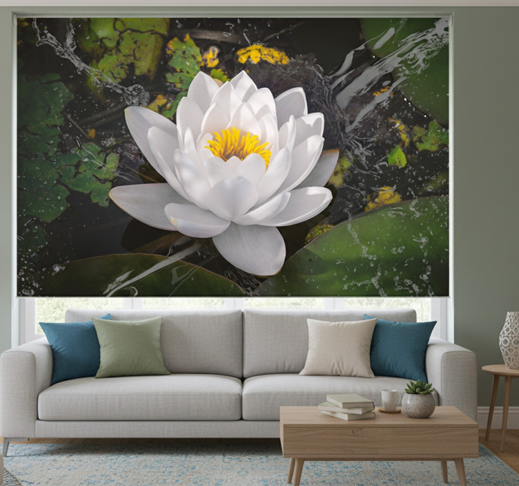 Living room blind white and yellow lotus