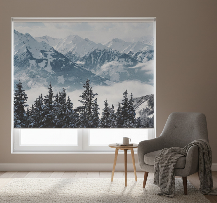 Reference: E8895Transform your living space into a serene retreat with our Living room blind with snowy mountains and trees. This stunning design features majestic snowy mountains and tranquil trees, creating a breathtaking backdrop that enhances any room's aesthetic. The roller blind not only elevates your interior decor but also provides practical benefits such as easy assembly and disassembly in just two clicks, ensuring you can clean your windows effortlessly. Let the beauty of nature fill your home while enjoying privacy and light control!