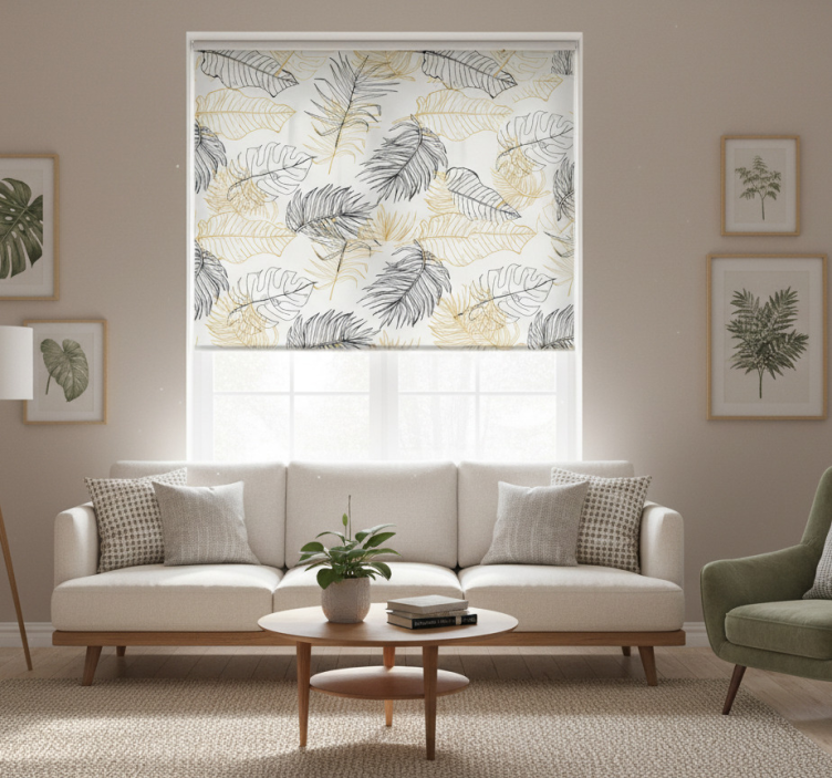 Reference: E7684Introducing our Modern blind escapade palm leaves design, a stunning blend of contemporary style and natural elegance! This roller blind features a captivating palm leaves pattern that beautifully combines vibrant colors and intricate designs. With its easy assembly in just two clicks, effortless cleaning, and quick disassembly, this product not only enhances your decor but also ensures practicality and convenience. Enjoy the benefits of protecting your room from direct sunlight while maintaining privacy and regulating temperature, all while adding a touch of sophistication to your living space!