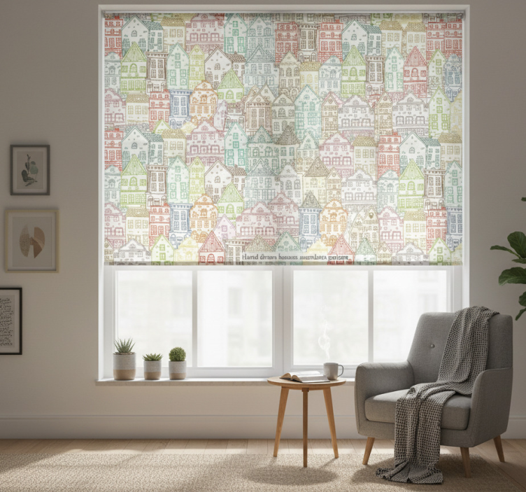 Installing the Modern blind hand-drawn houses pattern modern blind is a breeze! Simply follow the easy instructions to get it up and enjoy your beautifully decorated space in no time. With just two clicks, your window will be adorned with this captivating design!