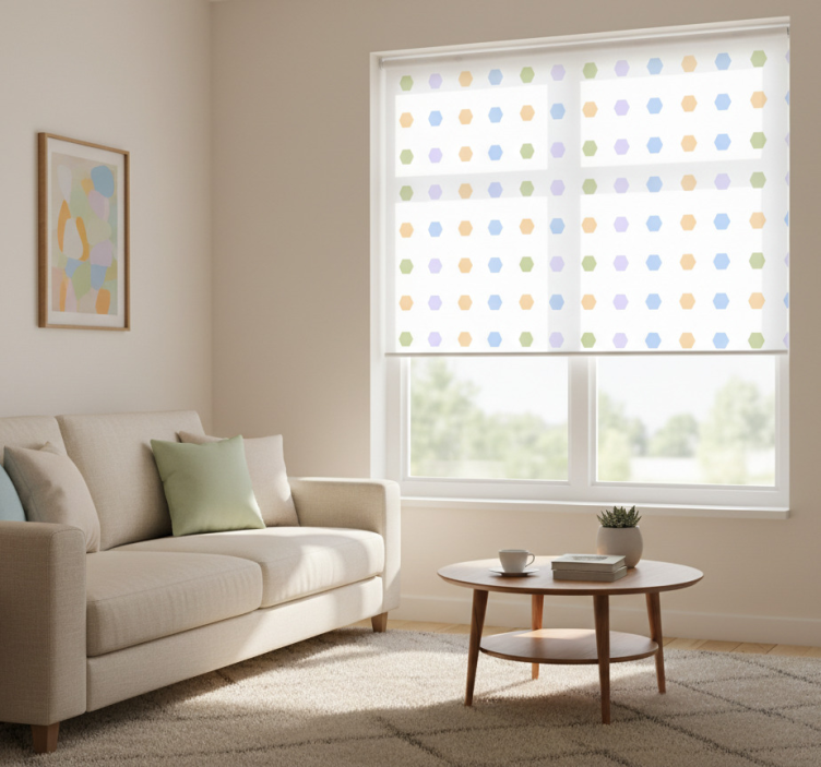 Transform your home with our Modern blind multicolor hexagons on light background modern blind! This unique design not only adds a splash of color but also elevates the overall ambiance of any room. Whether you’re looking to brighten up your living area or create a cozy atmosphere in your bedroom, this roller blind serves as a perfect decorative element. Its stylish pattern and functionality make it an inspiring choice for those seeking to express their personal style while enjoying the benefits of privacy and light control.