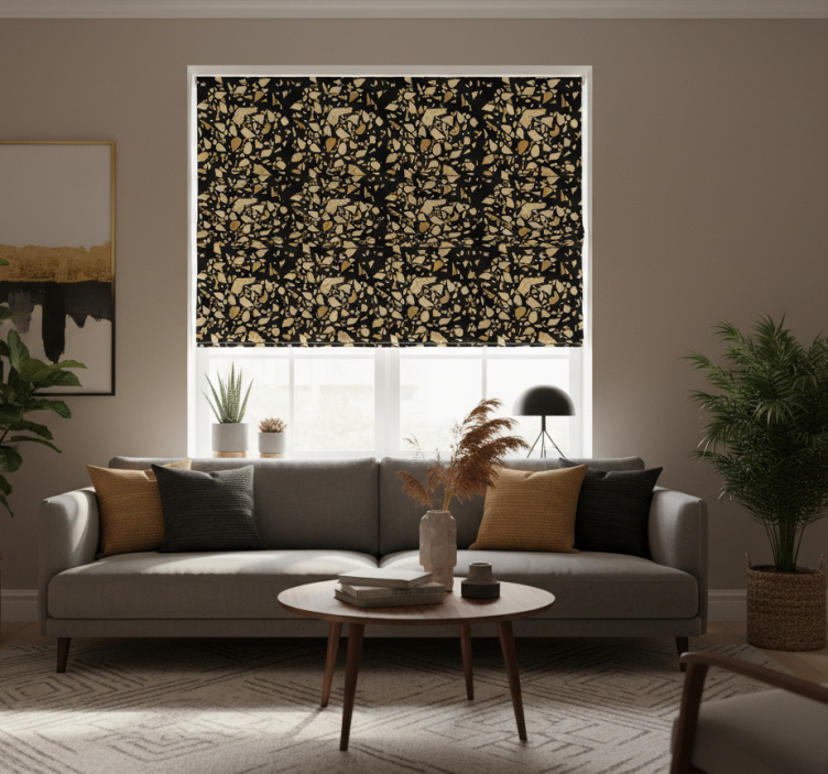 Transform your living space with the Modern blind terrazzo style in black and gold modern blind. This exquisite roller blind is not just a functional item; it is a statement piece that elevates your decor with its unique design. Imagine the compliments you'll receive as guests admire the sophisticated look it brings to your home! The terrazzo pattern adds a contemporary touch, making it suitable for various interior styles, from modern to eclectic. Let this blind inspire your creativity and enhance the ambiance of your rooms!