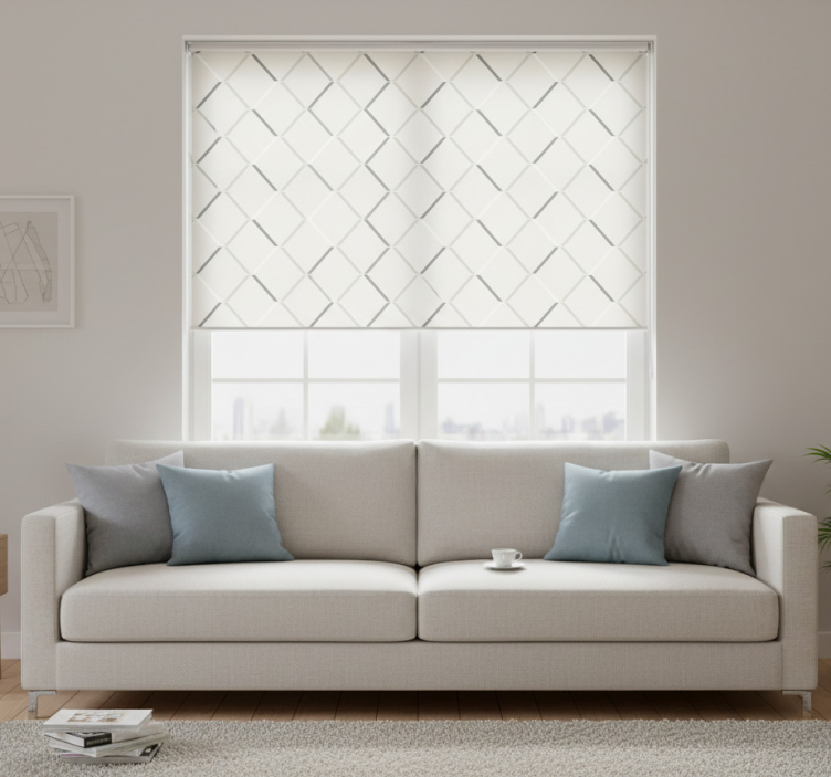 Reference: E7616Introducing our Modern blind with nordic diamonds pattern, a stunning addition to any home decor! This roller blind features an eye-catching nordic diamonds pattern that beautifully combines contemporary aesthetics with timeless elegance. With easy assembly in just 2 clicks, effortless cleaning, and the ability to regulate room temperature, this product is designed for modern living. It offers privacy when lowered while enhancing the overall decoration of your space!