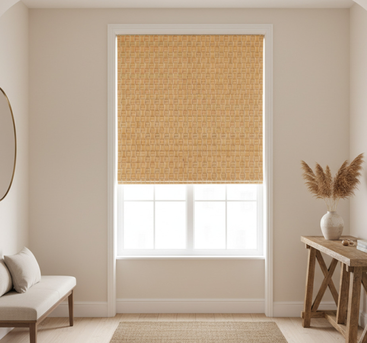 Reference: E7845Introducing our stunning Pattern roller blind natural wicker grid design that perfectly blends style and functionality! This exquisite roller blind features a beautiful natural wicker grid design that enhances the aesthetics of any room. Crafted with care, it showcases a unique pattern that not only elevates your decor but also provides essential benefits such as protecting your room from direct sunlight, offering privacy when lowered, and allowing you to regulate the room temperature efficiently.