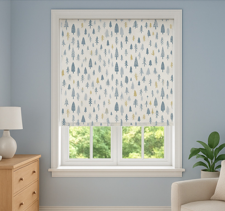 Reference: E6075Transform your space with our stunning Scandinavian blind nordic winter forest design. This captivating design features a serene winter forest scene, where frosted trees and delicate snowflakes create a tranquil atmosphere. The combination of soft, muted colors and intricate patterns brings a touch of Nordic elegance to any room. With easy assembly in just two clicks, effortless cleaning, and the ability to disassemble in two clicks, this roller blind is both practical and beautiful. It also protects your room from direct sunlight while providing privacy when lowered, allowing you to enjoy your space peacefully.