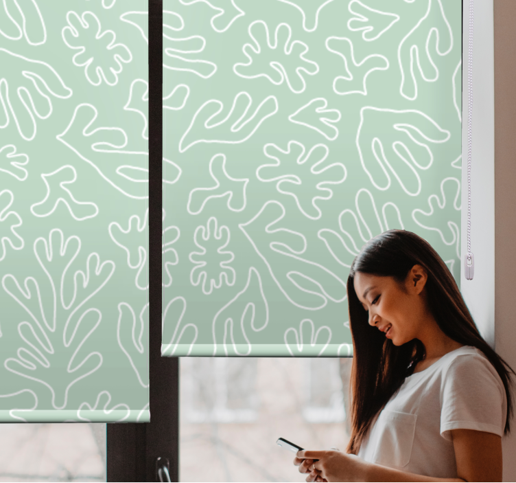 Introducing our Stylish Plant Patterns blind flowers and plants, a stunning fusion of doodles and silhouettes inspired by nature. This design captures the essence of seaweed, algae, and floral patterns, bringing a vibrant touch to any room. Each glance at these exquisite blinds transports you to a tranquil garden, effortlessly enhancing your decor.