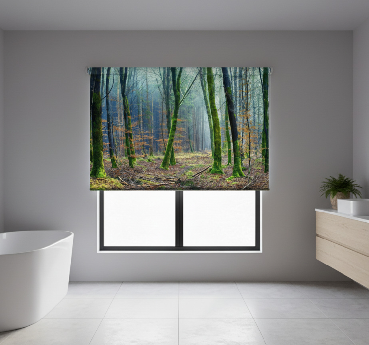 Reference: E6148Transform your living space with the Tree blind foggy forest japandi design, where serene hues and intricate patterns come together to create a mesmerizing visual experience. This roller blind features easy assembly in 2 clicks, easy disassembly for quick cleaning, and a unique aesthetic that enhances your room's decor. It protects against direct sunlight while providing privacy when lowered, allowing you to enjoy your space without compromising on style.