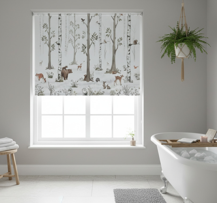 The Tree blind playful woodland illustration tree blind is the ideal choice for anyone looking to infuse their living space with creativity and joy. Imagine waking up to a scene filled with friendly forest animals and lush greenery, inspiring your day with a sense of adventure and wonder. This roller blind is not just a window covering; it is a statement piece that elevates your interior design and sparks the imagination of both children and adults alike!