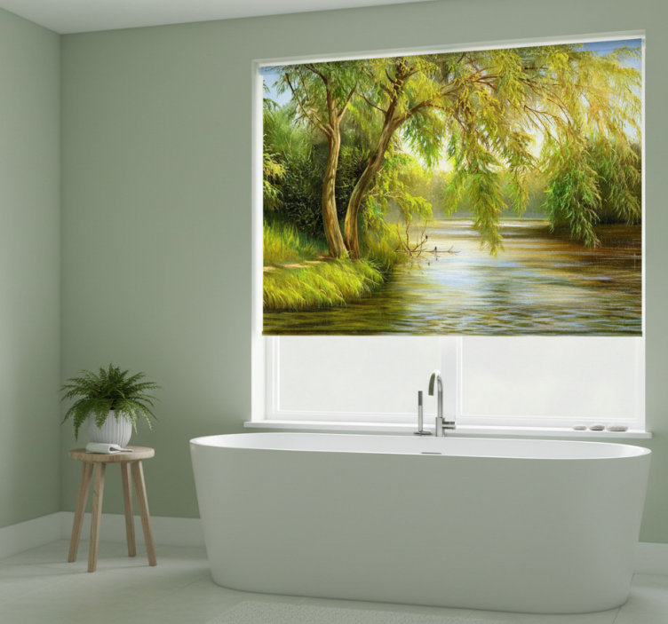 Reference: E6154Introducing our stunning Tree blind serene river willow, a captivating addition to any space! This roller blind showcases a beautiful design featuring serene river willows gracefully swaying in the breeze, bringing a touch of nature indoors. With its easy assembly in just 2 clicks, effortless cleaning, and customizable measurements, this roller blind perfectly balances aesthetics and functionality.