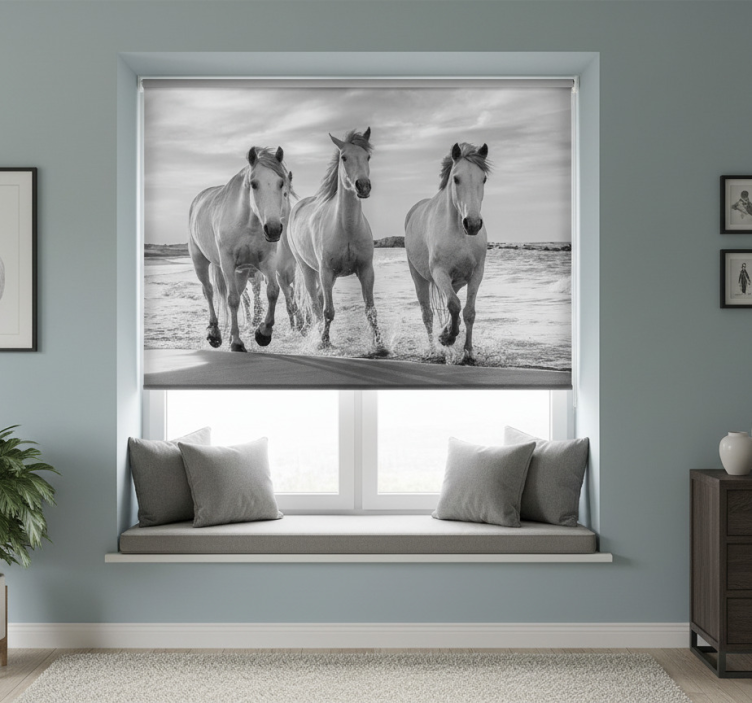 The White window blind galloping horses white window blind is not just a functional addition to your home; it is a statement piece that inspires creativity and joy! Imagine the beauty of galloping horses gracefully framing your windows, enhancing your decor while providing essential light control and privacy. This roller blind adds a touch of sophistication and warmth, making your space feel more inviting and stylish.
