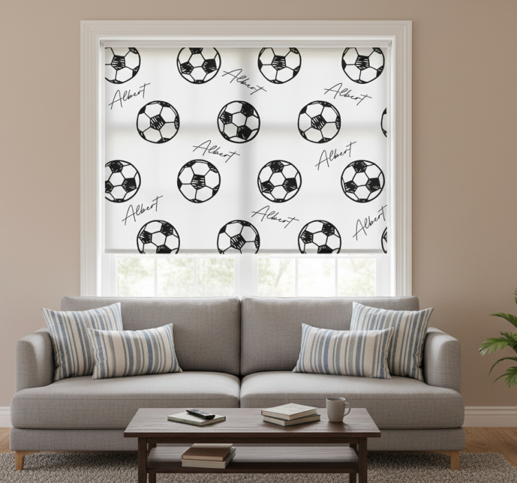 Reference: E8493Transform your space with our White window blind personalized football, a stunning design that combines functionality and style. This roller blind features an easy assembly process in just two clicks, is easy to clean, and can be disassembled just as quickly, making it simple to maintain your windows and their surroundings. The blind effectively protects your room from direct sunlight, offers privacy when lowered, and helps regulate room temperature while ensuring your home security by allowing you to see outside without being seen. Plus, it enhances your room's decor, making it a perfect addition to any space!