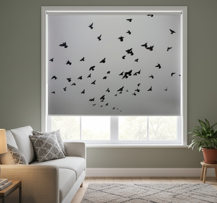 Reference: E8438Transform your living space with our White window blind with aesthetic bird imagery. This exquisite design features beautiful bird motifs that elegantly blend with a pristine white backdrop, creating a serene atmosphere in any room. The White window blind with aesthetic bird imagery not only enhances your decor but also offers easy assembly in just two clicks, making it a practical choice for effortless elegance.