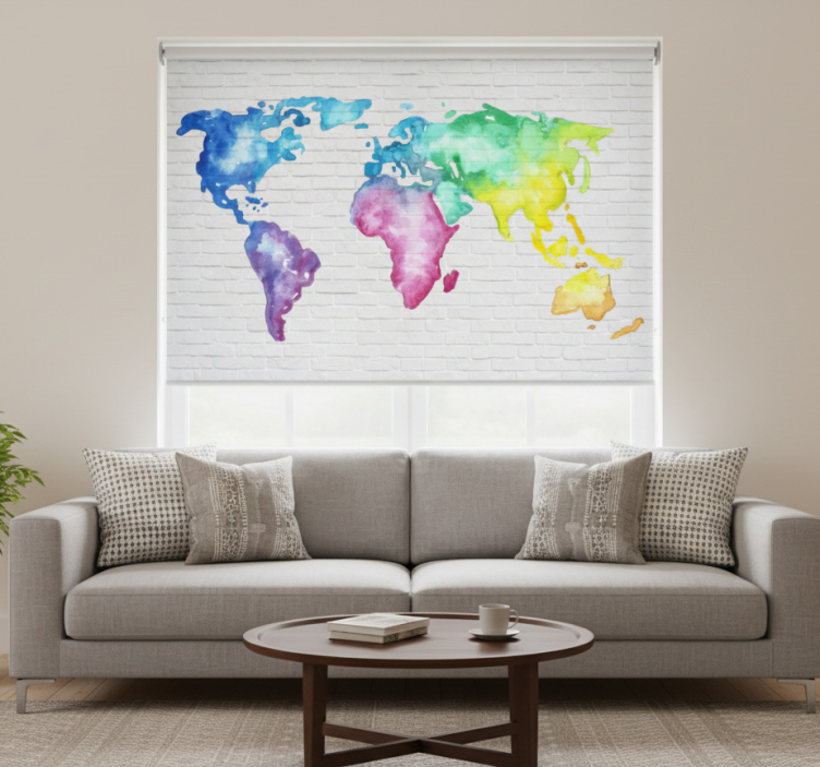 Reference: E8476Transform your space with our White window blind with colorful world map design, a stunning addition that combines functionality and artistic flair. The vibrant map design showcases a beautiful array of colors, inviting exploration and curiosity into your home. With its easy assembly in just 2 clicks, effortless cleaning, and customizable measurements, this roller blind is perfect for those who value both aesthetics and practicality!