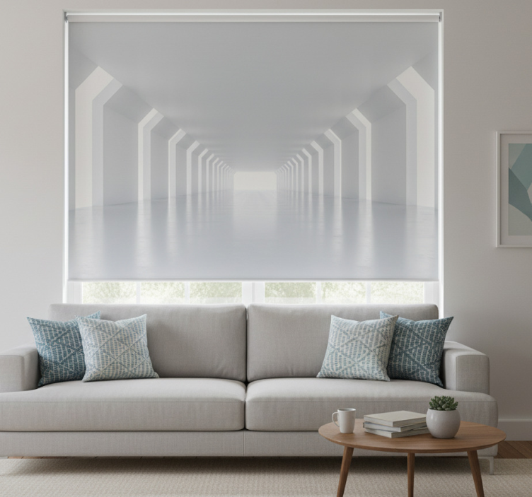 Reference: E9966Transform your living space with our White window blind with futuristic corridor view, a stunning blend of functionality and modern design! This roller blind features easy assembly in just two clicks, effortless cleaning, and quick disassembly, making it a breeze to maintain the beauty of your windows. Enjoy the perfect balance of light and privacy, as it effectively protects your room from direct sunlight while allowing you to regulate the temperature. With 100% customizable measurements and three unique textures, this roller blind enhances your decor and provides a secure environment where you can see without being seen!
