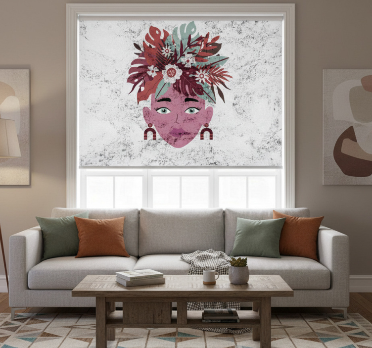 Reference: E8470Transform your space with our White window blind with modern woman and flowers design, a stunning blend of elegance and creativity. This unique design features a graceful modern woman surrounded by beautiful flowers, creating a lively and inspiring atmosphere in any room. The visually striking elements are perfect for enhancing your home’s interior, bringing a breath of fresh air and a touch of nature indoors!