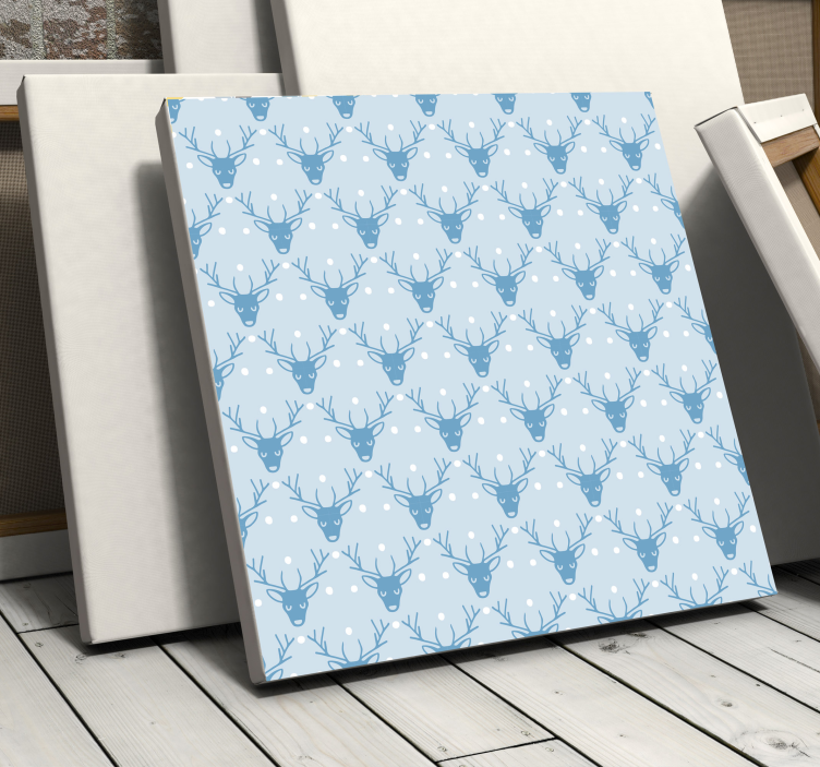 Introducing our stunning Stag canvas winter stag design that beautifully captures the essence of winter. This captivating illustration features majestic deer and reindeers, their heads gracefully showcased against a mesmerizing blue background. The intricate pattern evokes the spirit of Christmas, with snowflakes delicately falling around the stags, making it a perfect addition to your festive decor!