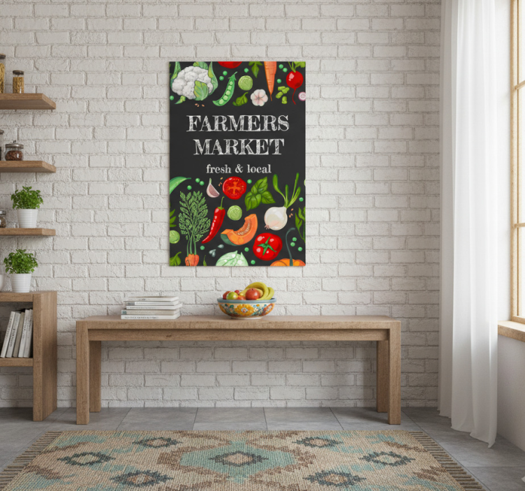 Reference: G637Introducing our vibrant Farmers market kitchen poster, a delightful depiction of fresh produce and rustic charm! This stunning design features high color intensity, a semi-matt finish without reflections, and is printed on premium 180g/m2 paper, making it an eye-catching addition to any kitchen space. It's not just a decorative piece, but a celebration of the farm-to-table movement!