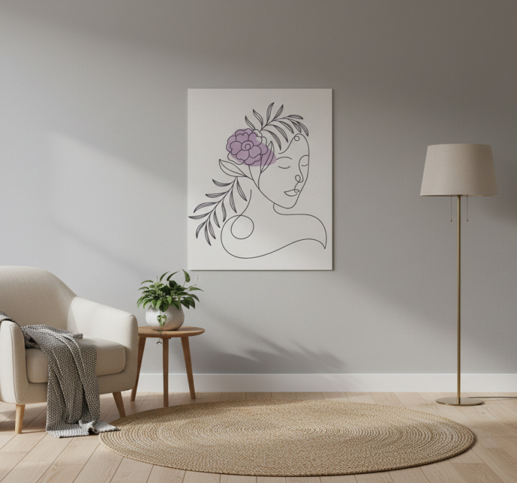 Reference: G971This stunning Flower poster minimalist woman face art print features a captivating design that combines elegance and simplicity. The artwork showcases a beautiful woman’s face intertwined with delicate floral elements, all crafted with high colour intensity on a semi-matt finish that ensures no reflections disturb its charm. Printed on 180g/m2 grammage paper, this poster is ideal for adding a touch of sophistication to any space!