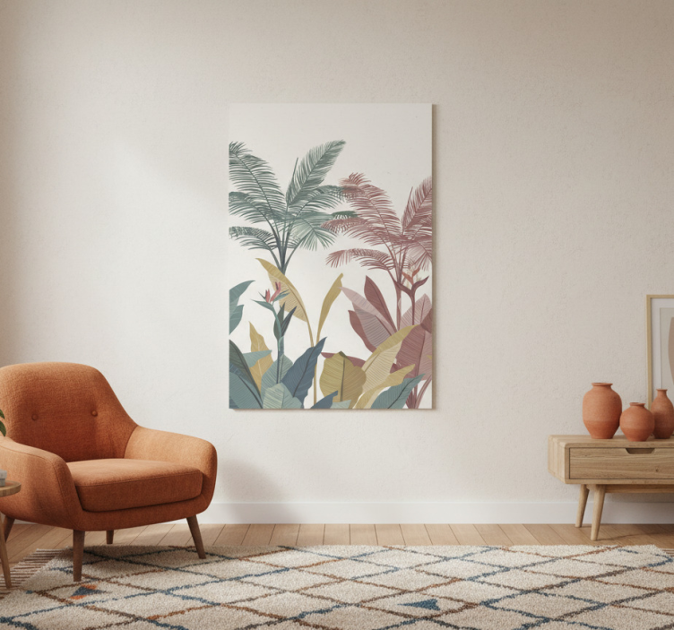 Reference: G986Introducing our stunning Flowers poster with terracotta tropical plants, a vibrant piece of art that brings life to any space! This beautiful design features lush tropical foliage in warm terracotta tones, creating an inviting atmosphere. The 180g/m2 grammage ensures durability while the semi-matt finish eliminates reflections, allowing you to enjoy the high colour intensity of the artwork effortlessly.
