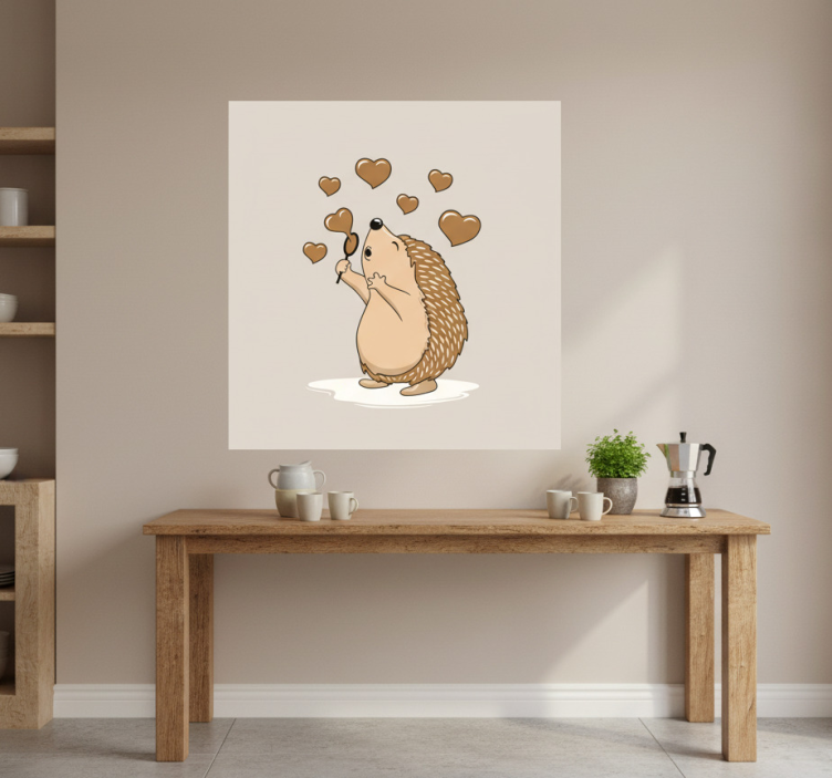Reference: G601Introducing our delightful Kitchen poster hedgehog with love hearts, a charming addition to your home decor! This beautifully designed poster features an adorable hedgehog surrounded by whimsical love hearts, creating a heartwarming atmosphere in any kitchen. Printed on high-quality 180g/m2 paper, it boasts a semi-matt finish that minimizes reflections while showcasing high color intensity, making it a standout piece in your living space.