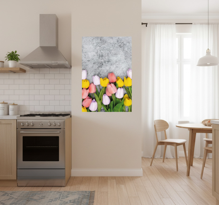 Reference: G635Introducing our Kitchen poster of similar tulip flowers, designed to bring a vibrant touch to your culinary space! This stunning artwork showcases an array of tulip flowers, beautifully arranged with high color intensity on a semi-matt finish that eliminates reflections. Printed on 180g/m2 grammage paper, it’s perfect for any kitchen setting, creating a lively atmosphere that inspires creativity and joy!