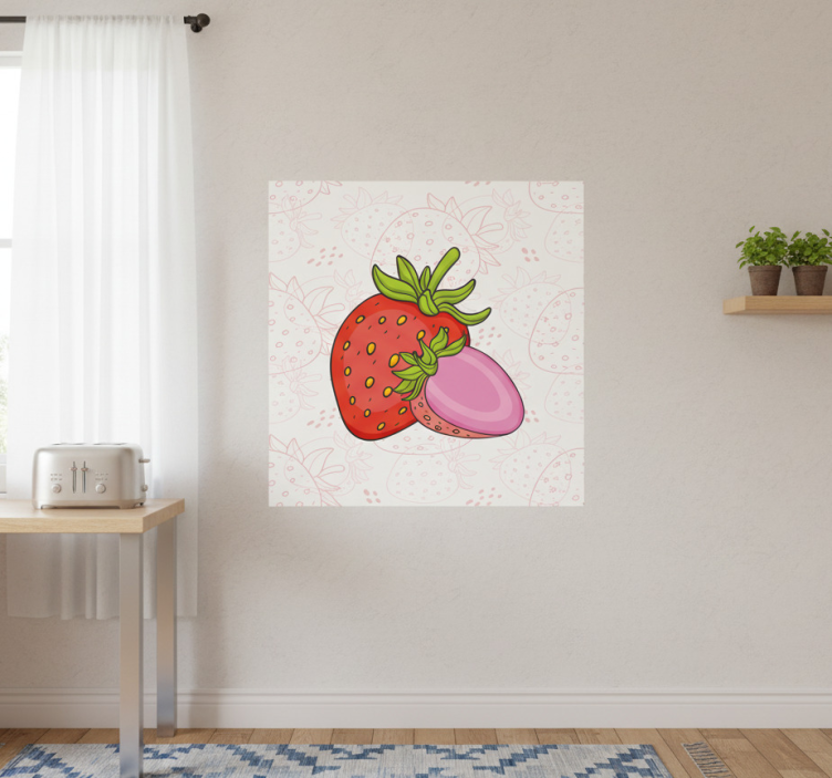 To beautifully display your Kitchen poster seamless red and pink strawberries kitchen poster art, we recommend using double-sided adhesive tape for a clean finish. Alternatively, you can frame it for a more polished look. Simply stick the strips to the back and hold each strip firmly for 10 seconds. For more casual options, thumbtacks or reusable blu-tack work well too!