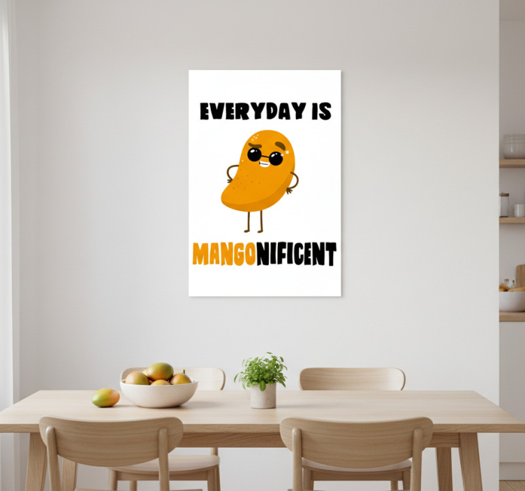 To display your Kitchen poster with a funny mango quote kitchen poster art, we recommend using double-sided adhesive tape for a clean look. Simply apply tape to the back of the poster and press it against the wall for a secure hold. Alternatively, you can frame it for a more polished appearance or use thumbtacks and reusable blu-tack for easy mounting. Enjoy your new kitchen decor!