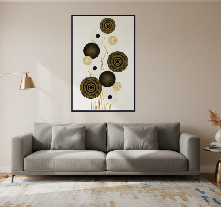 Reference: G858Transform your space with our stunning Living room poster circles glamour decor, a captivating design that features vibrant colors and a mesmerizing circular pattern. The poster is crafted from high-quality 180g/m2 paper, ensuring a semi-matt finish that eliminates reflections and highlights the high color intensity of the artwork. Elevate your living room aesthetic with this eye-catching piece!