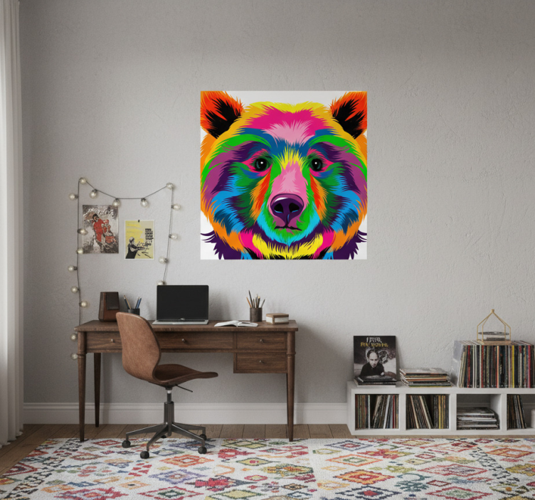 Reference: G787Introducing our vibrant Living room poster colorful bear art print, a stunning piece that captures the essence of joy and creativity. This delightful artwork features a playful bear surrounded by a burst of colors, designed on a high-quality 180g/m2 paper. With its semi-matt finish that prevents reflections and ensures high color intensity, this poster will become a captivating focal point in any living space!
