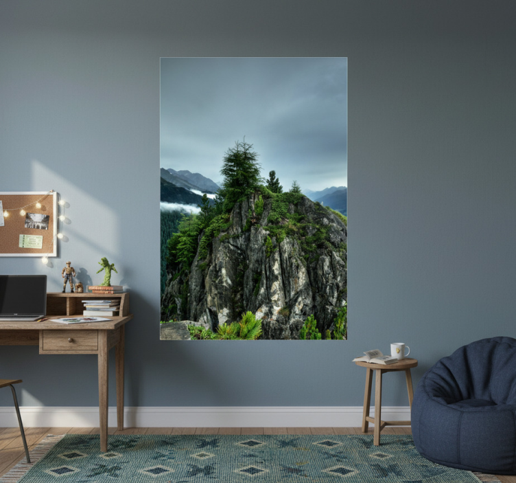 Reference: G793Introducing our stunning Living room poster single rock in green forest, a captivating piece of art that brings the tranquility of nature into your home. This design features rich green hues that evoke the serene atmosphere of a lush forest, complemented by the striking presence of a solitary rock. With a semi-matt finish that eliminates reflections and a high colour intensity, this poster is crafted on 180g/m2 grammage paper, making it ideal for enhancing your living space.