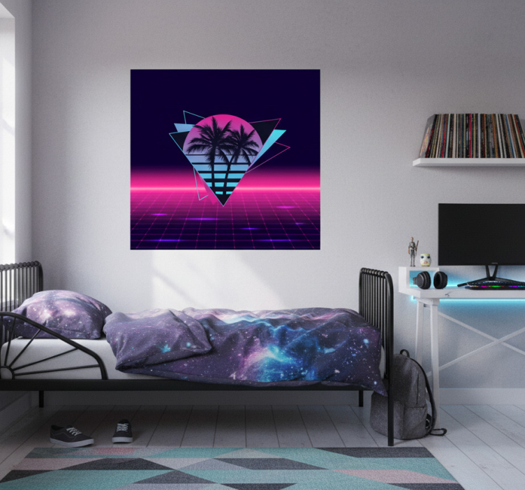 Reference: G773Introducing our stunning Living room poster vaporwave style palm tree art, a vibrant piece that perfectly captures the essence of retro aesthetics! This eye-catching design features bold colors, an enchanting palm tree silhouette, and a dreamy sunset backdrop, all brought together in a semi-matt finish that enhances its high color intensity. Crafted on 180g/m2 grammage material, it's ideal for posters and will effortlessly elevate any space in your home.
