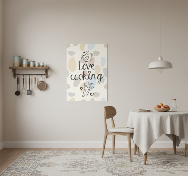 Reference: G636Introducing our Love cooking kitchen poster, a stunning piece of art that combines beautiful design with vibrant colors. This poster features a 180g/m2 grammage for durability, a semi-matt finish that eliminates reflections, and high color intensity that brings any kitchen to life. It's the perfect addition for anyone who cherishes the joy of cooking and wants to express their passion through décor!
