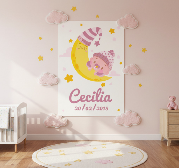Transform your baby's room into a magical wonderland with our Nursery poster baby with name and birth date nursery poster. This enchanting décor piece not only showcases your child's name and birth date but also adds a personal touch that will inspire love and joy. Every glance at this poster will remind you of the precious moments spent together, making it an essential addition to your nursery.